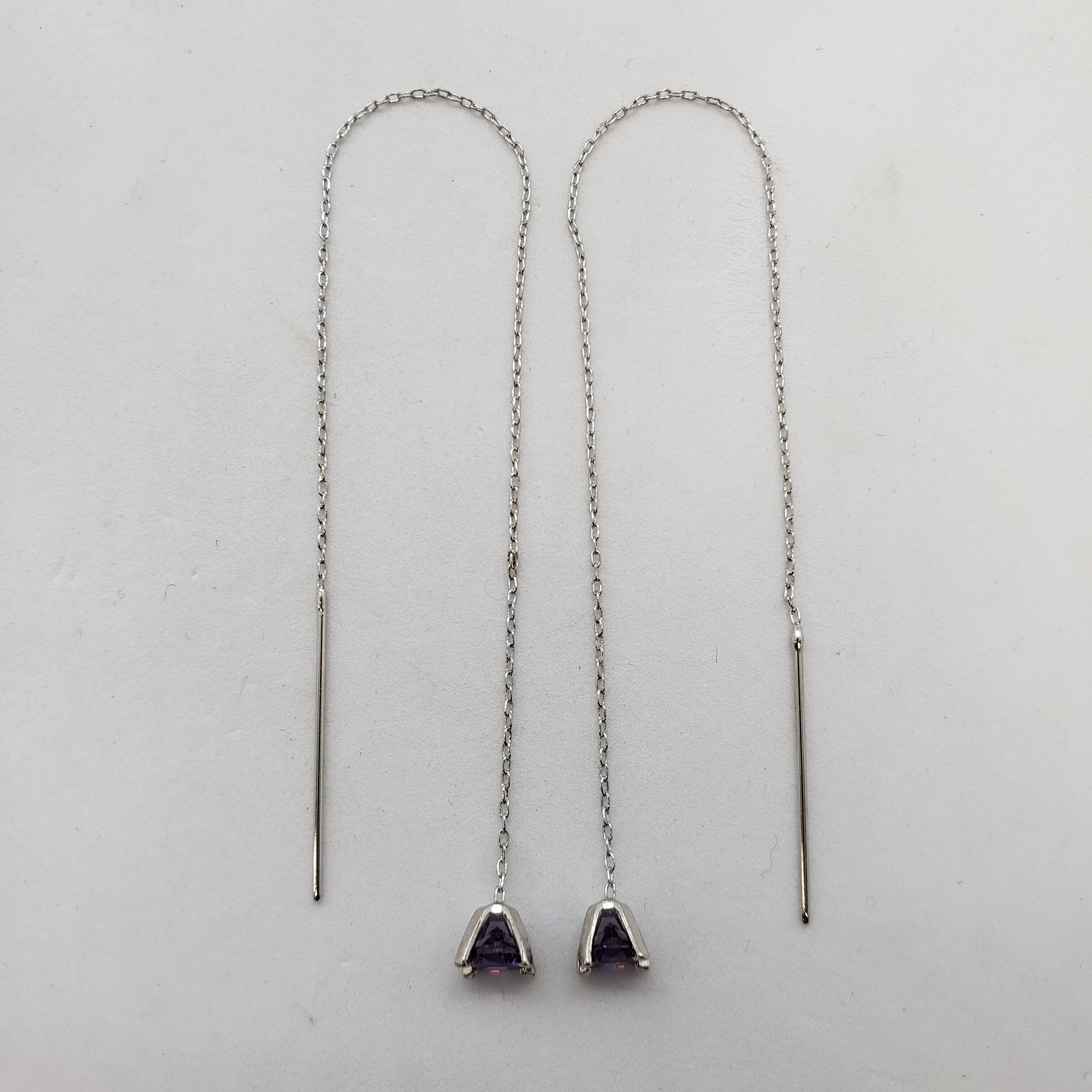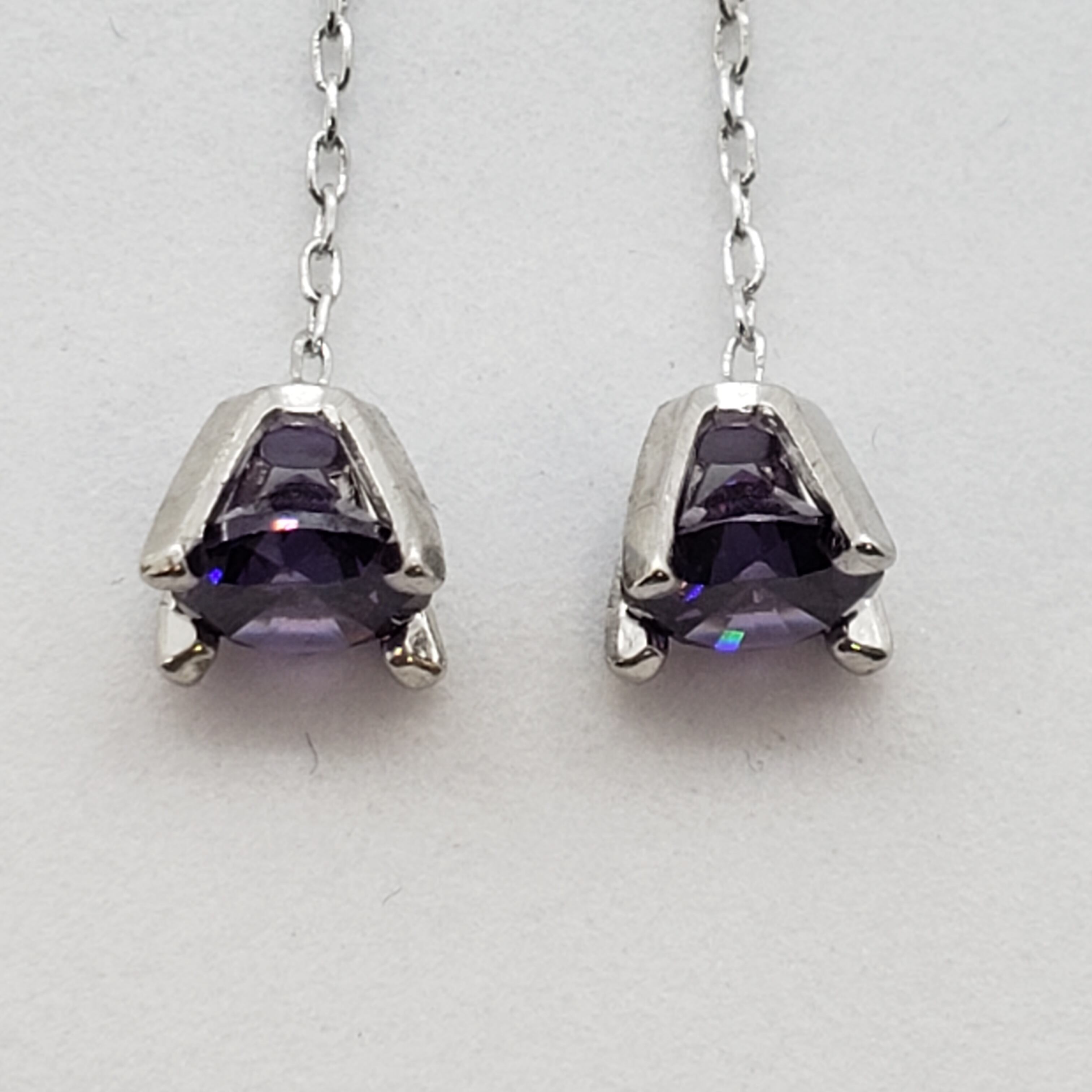 キュービックジルコニアのアメジスト色を使ったシルバー色の爪止めのアメリカンピアスです。