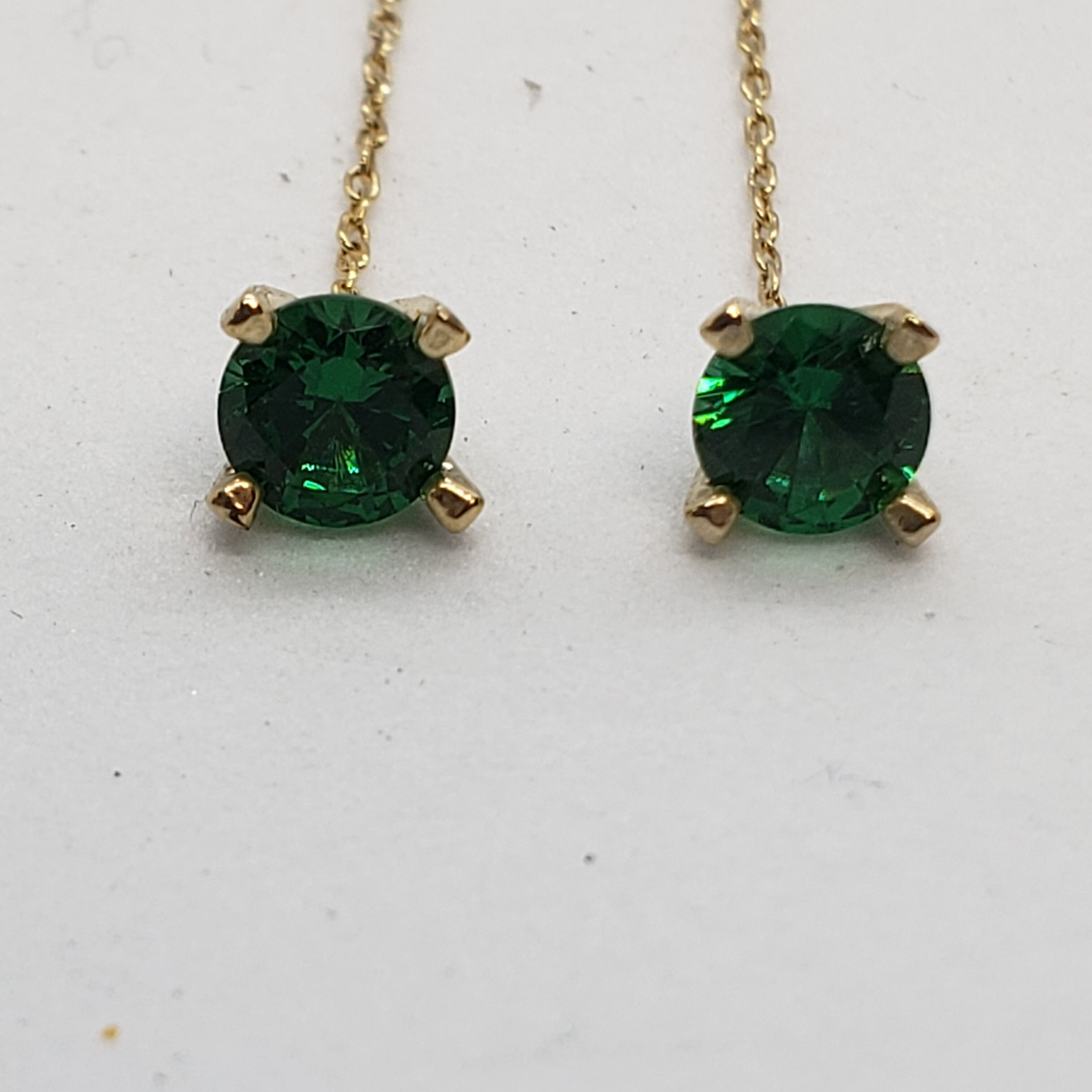キュービックジルコニアのエメラルド色を使ったゴールド色の爪止めのアメリカンピアスです。