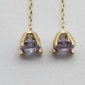 キュービックジルコニアのアレキサンドライト色を使ったゴールド色の爪止めのアメリカンピアスです。