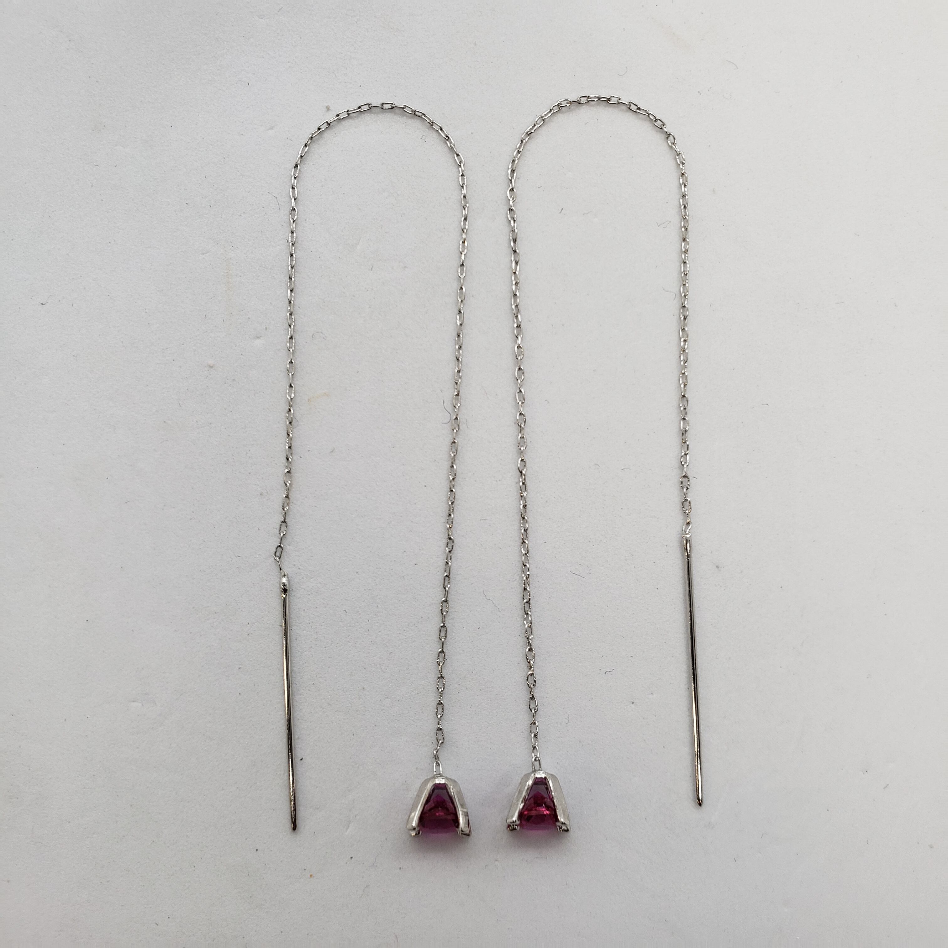 キュービックジルコニアのルビー色を使ったシルバー色の爪止めのアメリカンピアスです。