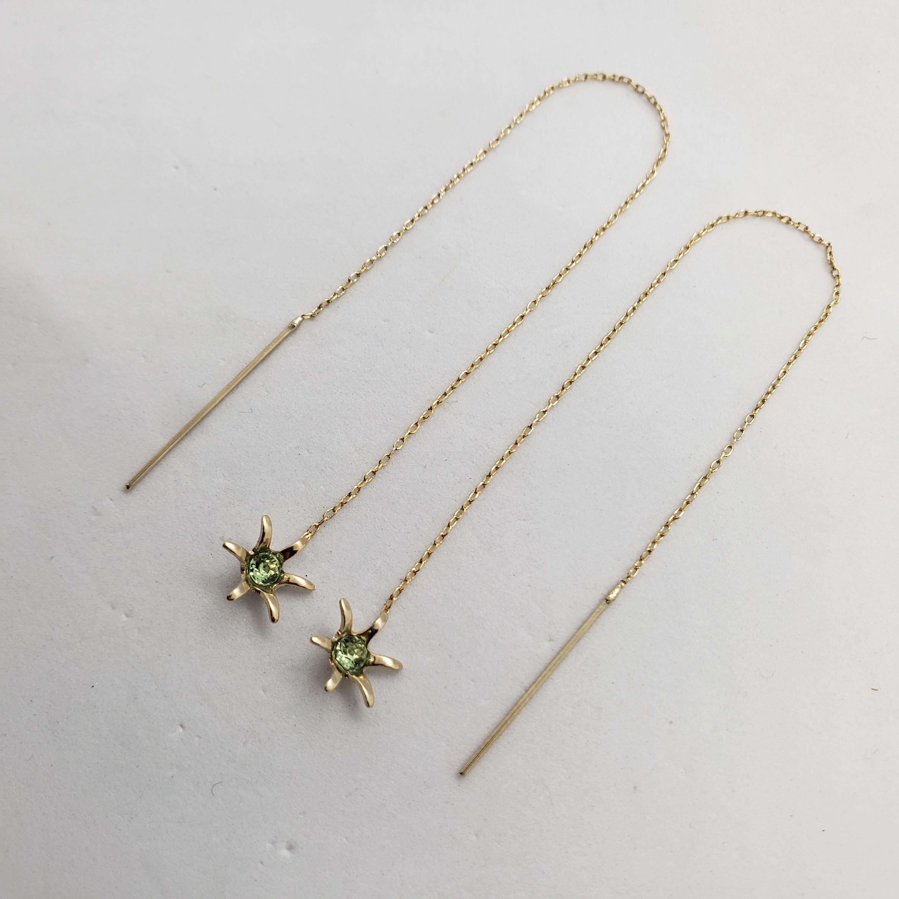 スワロフスキーのペリドット色を使ったゴールド色のアメリカンピアスです。