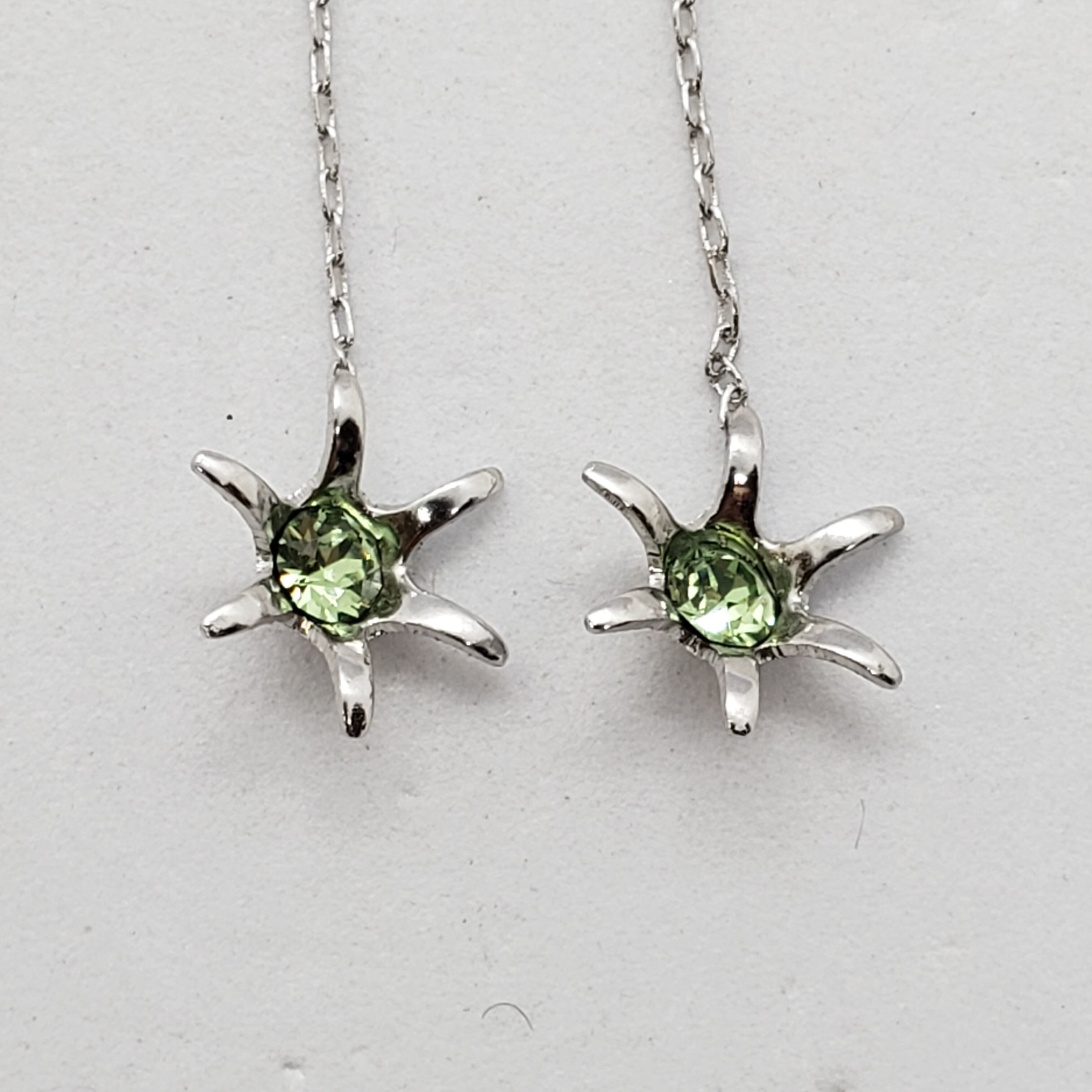 スワロフスキーのペリドット色を使ったシルバー色のアメリカンピアスです。